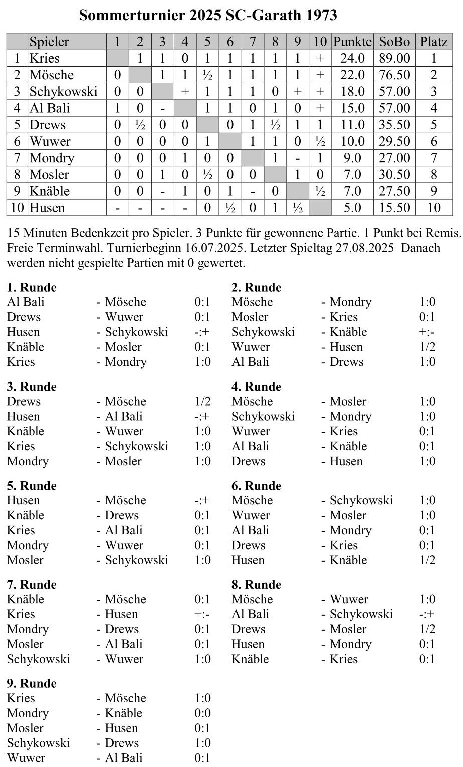 Das Sommerturnier 2025 begann am 16.07.2025 und endete am 03.09.2025.