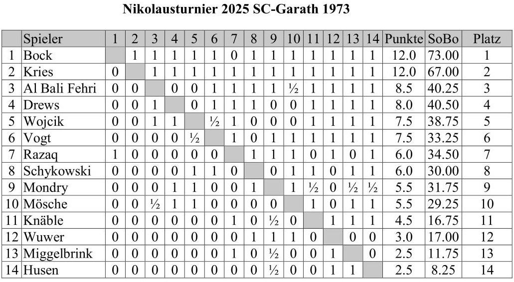 - Nikolausturnier wurde am 3.12.2025 ausgespielt